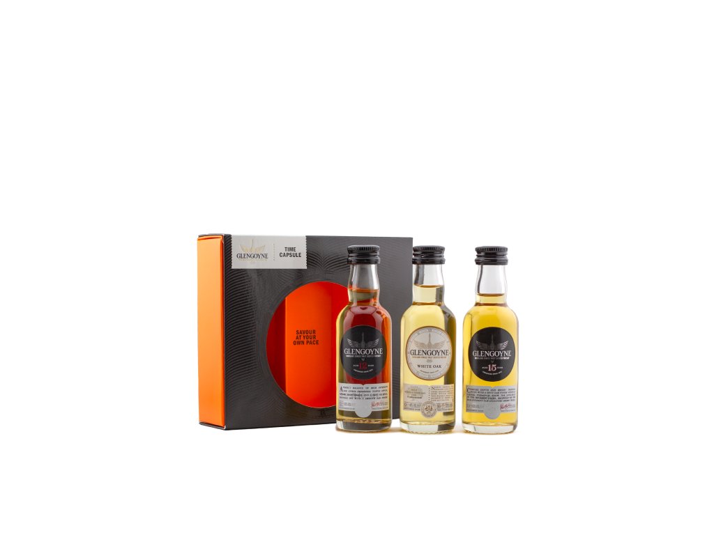 Dárková sada Glengoyne Time Capsule 3 × 5 cl obsahuje tři jedinečné whisky z řady Glengoyne – 12 let, 15 let a White Oak. Ideální jako malý dárek pod stromeček nebo narozeninové překvapení pro milovníky whisky.